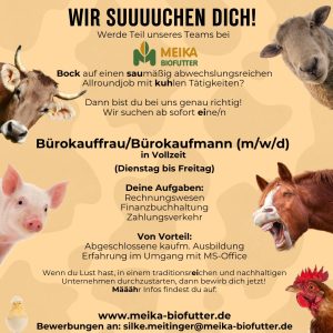 Als systemrelevatnes Familienunternehmen in fünfter Generation stellen wir seit 1914 Qualitätsfutter für Nutztiere her. Unser Unternehmen ist seitdem stetig gewachsen und wir sind immer auf der Suche nach neuen Gesichtern, die ihre Leidenschaft für Tiere, gesunde Tierernährung und Nachhaltigkeit mit uns teilen wollen.